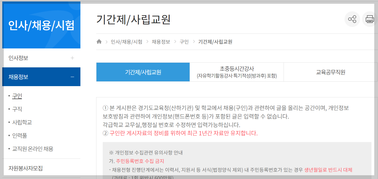 경기도교육청 구인구직 정보 한 눈에 찾아 보기