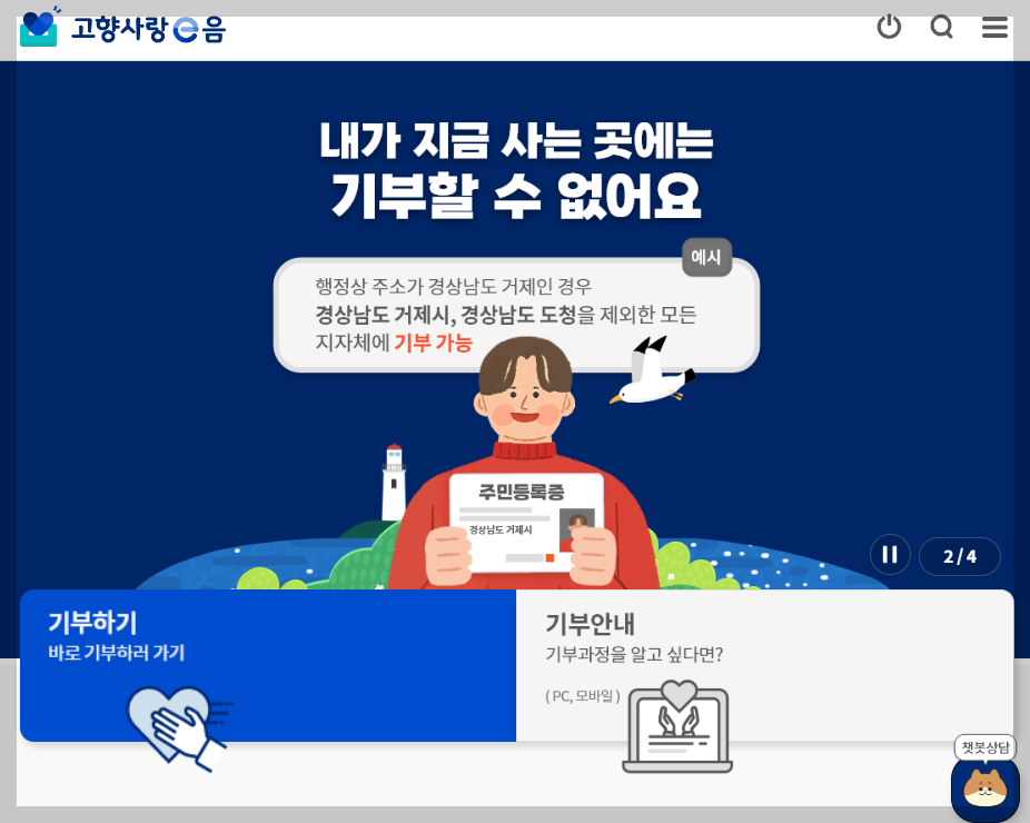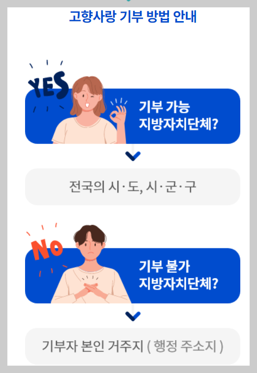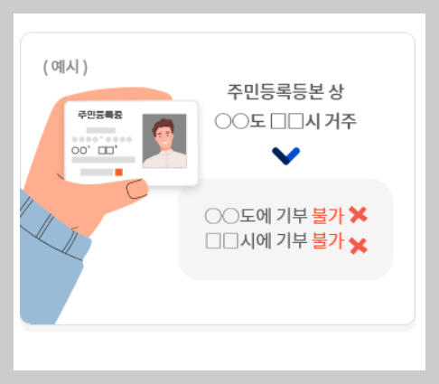 | 기부처는 | 지방단치단체 (주민등록상 거주지를 제외한 모든 지자체) |