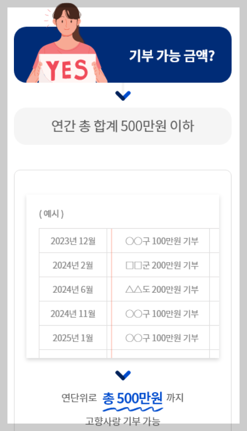 | 기부한도 | 연간 상한액 500만원 |