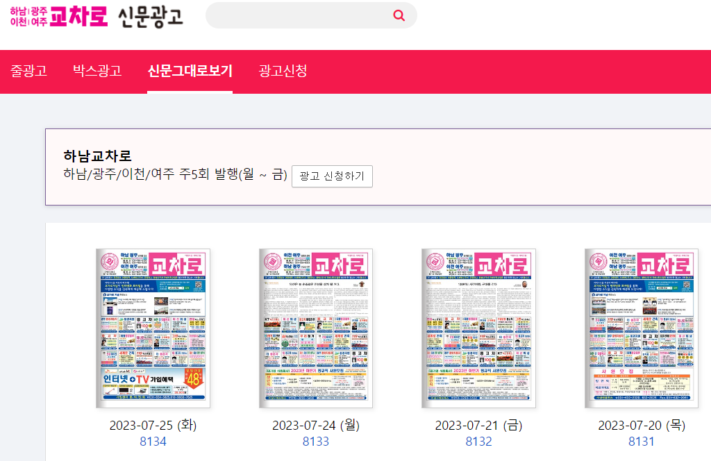 교차로 신문 그대로보기를 하려면 신문이북 메뉴를 선택하시면 됩니다