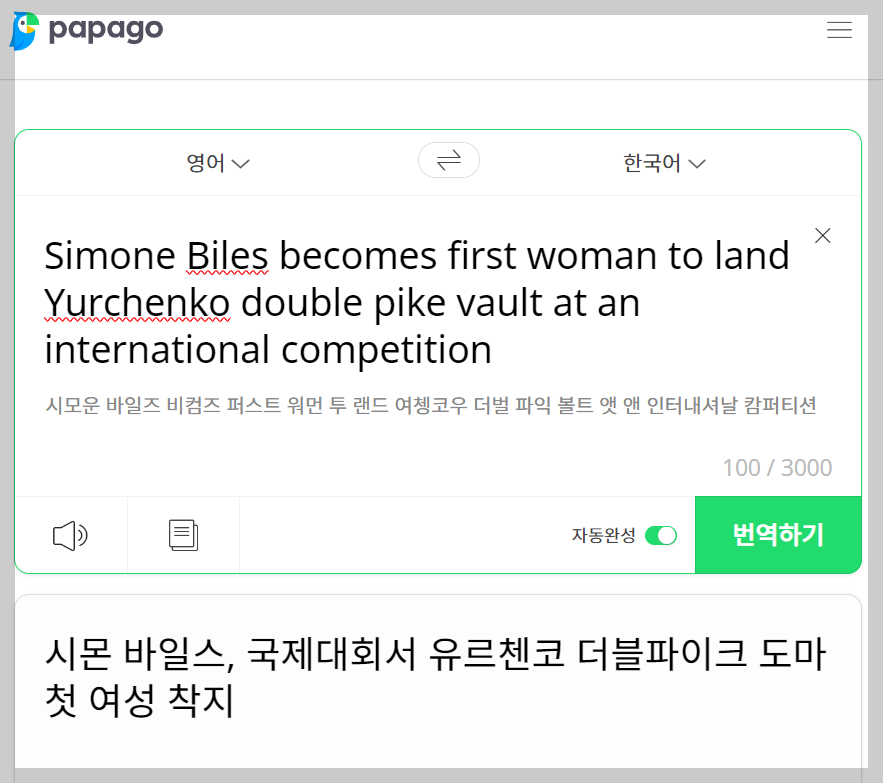 파파고에 들어가면 아래 화면을 보실 수 있게 됩니다. 임의로 제가 영어기사를 하나 가져와서 번역을 해 보았습니다. 상당히 부드럽게 번역이 된 것을 확인할 수 있었으며, 하단에 보시는 것과 같이 최대 3000자까지 한 번에 번역이 가능합니다.