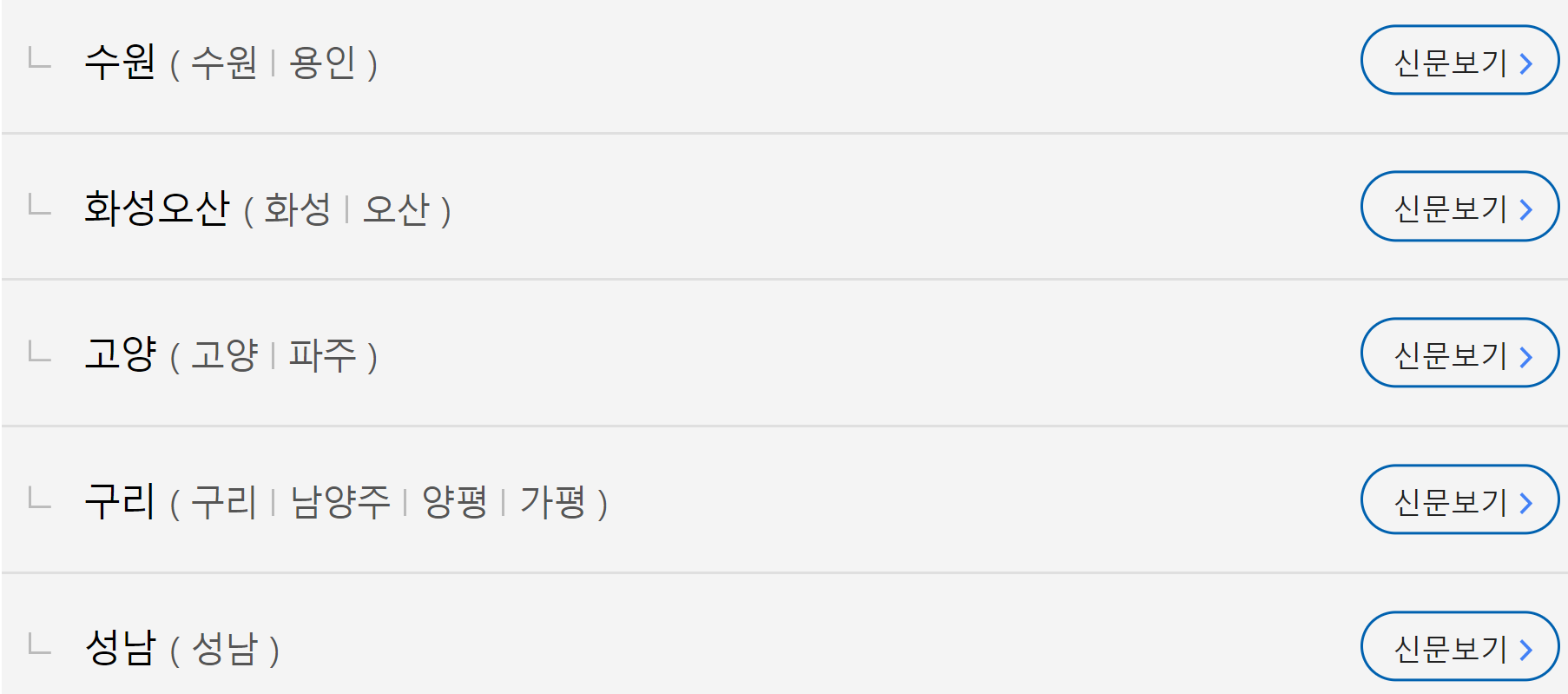 PC와 마찬가지로 내가 원하는 지역을 선택하시면 됩니다. 저는 아까와 마찬가지로 경기를 먼저 선택한 후 고양/파주를 선택해 보도록 하겠습니다.