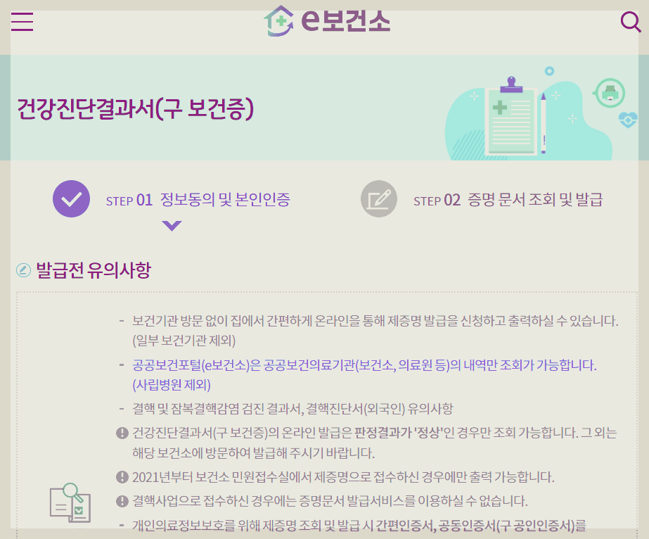 | 7 | 발급 시 온라인은 e보건소 이용 |