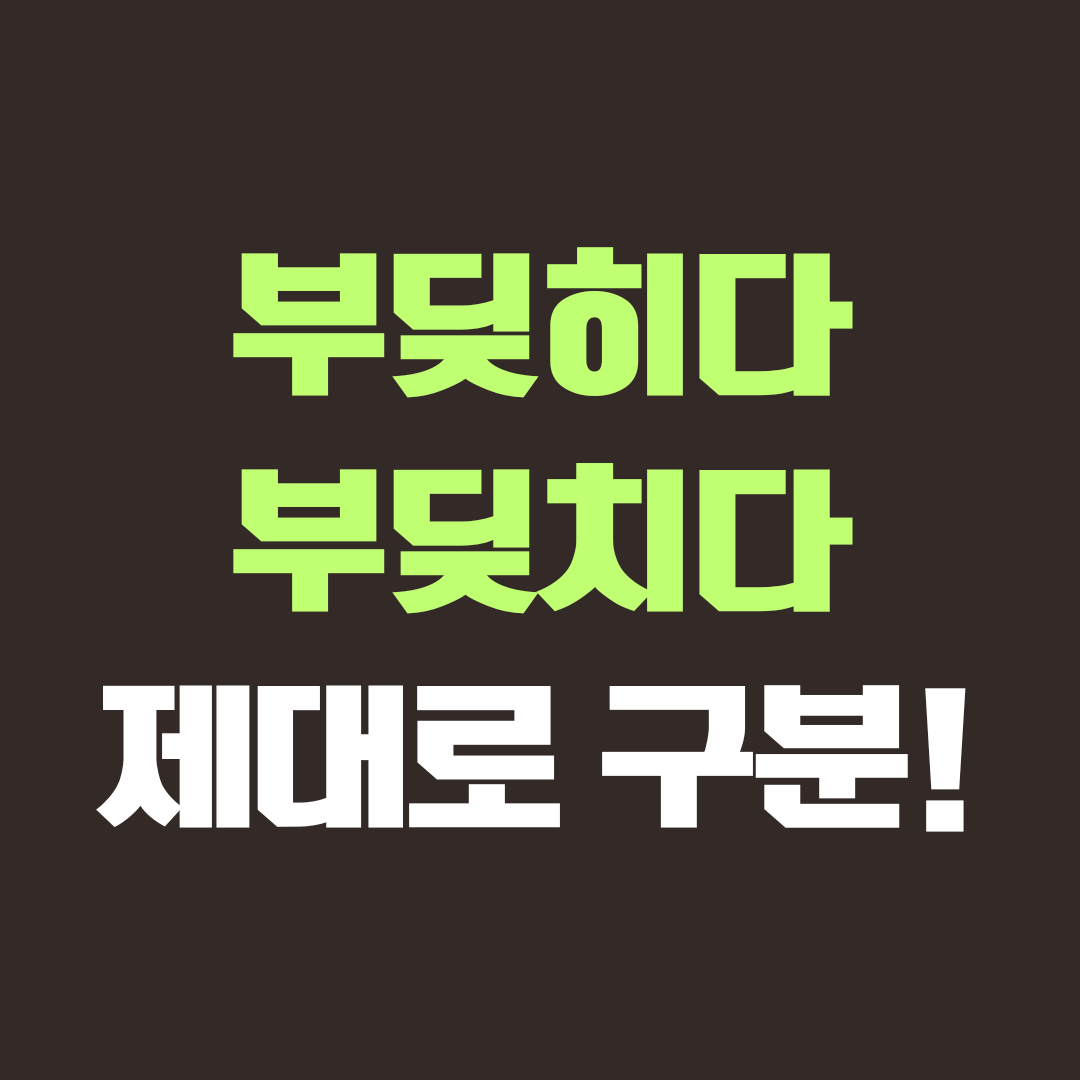 저번에 이어 오늘은 정말 많이 헷갈리는 표현인 부딪히다 부딪치다에 대해 다양한 예문과 함께 정확하게 구분 지을 수 있도록 준비해 보았으니 오늘 이후 더 이상 헷갈리지 않을 거라 생각합니다. 알고 보면 정말 간단한데 모르고 넘어가면 매번 검색해야 하기에 시간 낭비를 줄이기 위해서라도 확실히 알고 넘어가시기 바라겠습니다.