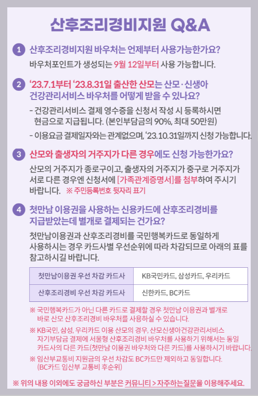 서울시 산후조리경비 구체적인 지원내용