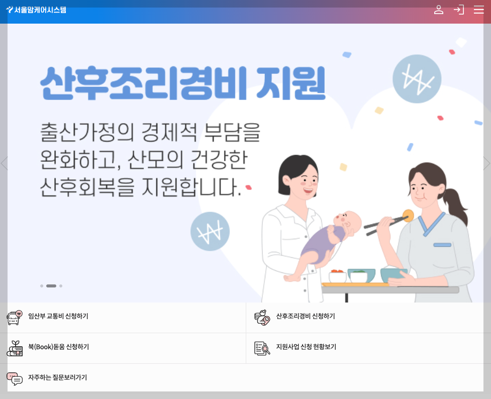 서울맘케어시스템 산후조리경비 지원 메뉴입니다.