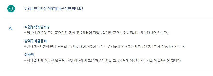 아래는 고용센터 홈페이지에서 많이 묻는 질문에 대해 가져와 보았습니다. 참고하여 주시기 바랍니다.