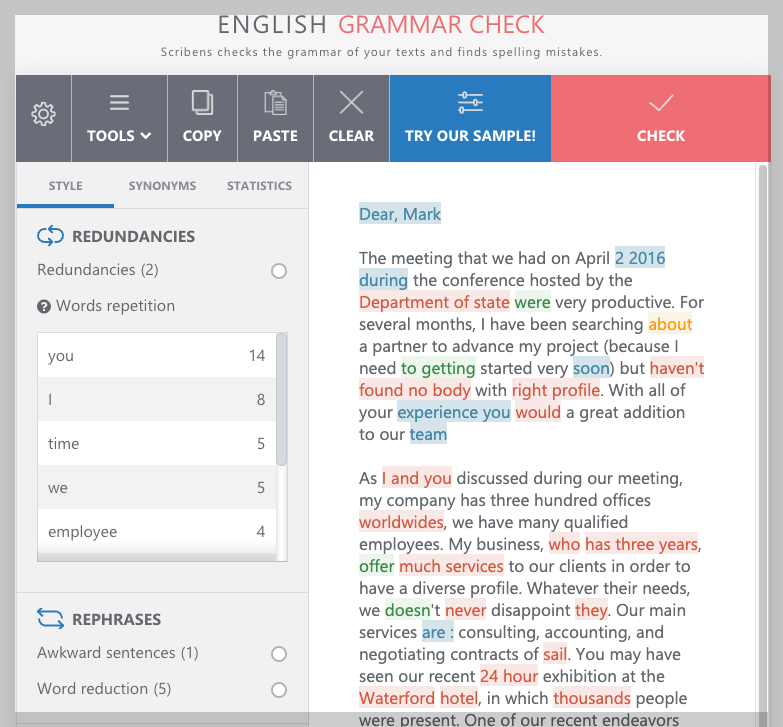 6번째 사이트는 스크라이벤스입니다. 아래 영어 스타일 정리해 놓은 특색 이외에는 다른 사이트들과 비슷한 구성으로 영어 문법 검사를 가볍게 할 수 있습니다.