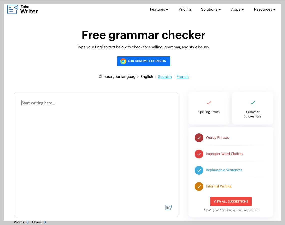 두 번째는 조호 라이터입니다. 머신 러닝 기반으로 스마트 제안을 하는 똑똑한 사이트입니다. 아래 사이트 화면에서 보시는 바와 같이 크롬 익스텐션에 추가 할 수도 잇습니다. 최근에 많은 분들에게 점점 더 알려지고 있는 사이트입니다.