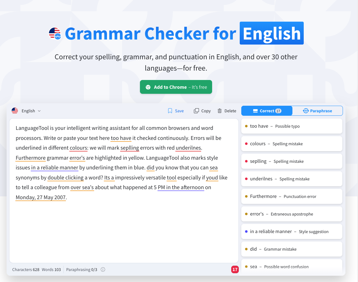 - 언어 지원: 영어 외에도 여러 언어의 문법을 교정할 수 있습니다.