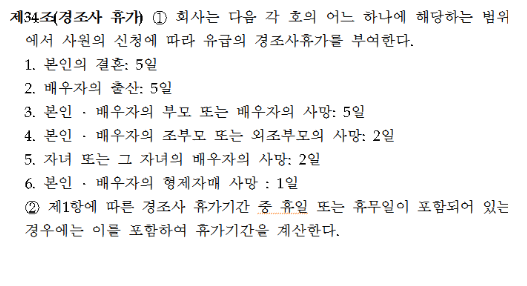 민간기업에서의 경조사 휴가 규정