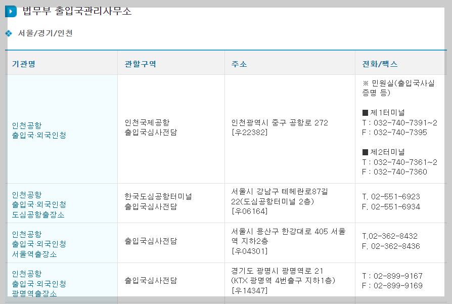 법무부 출입국 관리사무소에서도 발급이 가능합니다. 인터넷으로 발급을 받았는데 오류가 있다면 출입국 사무소를 방문하여 해당 사항 수정을 요청해야 합니다. 이 때 방문을 해야 하기에 필요하신 분은 위치가 어디에 있는지 아래 홈페이지에서 확인하시기 바랍니다.