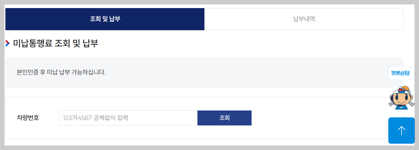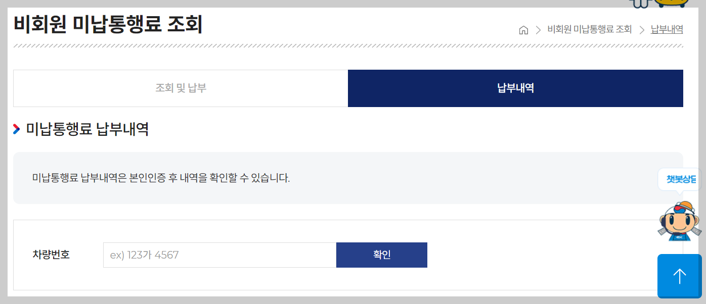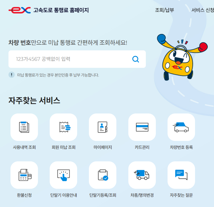 고속도로 통행료 홈페이지 미납 통행료 조회 메뉴 바로가기!