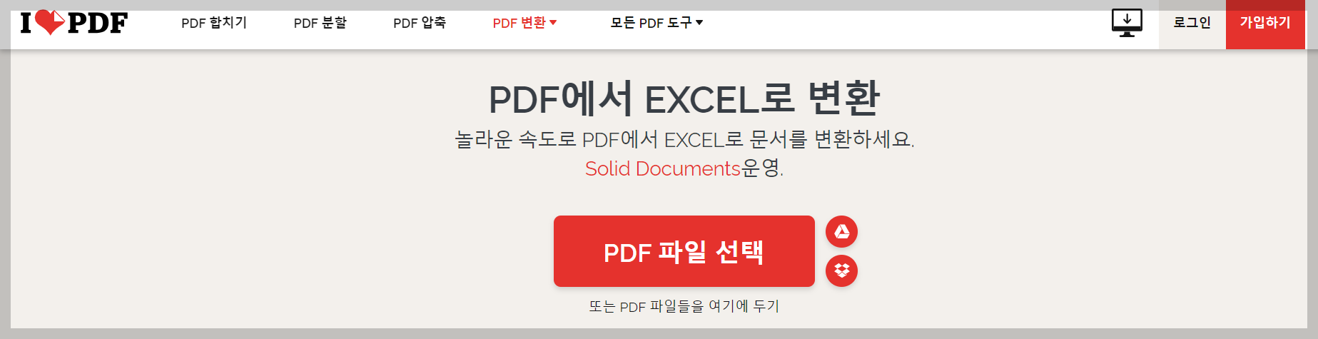 PDF 엑셀 변환 사이트 - 아이러브PDF