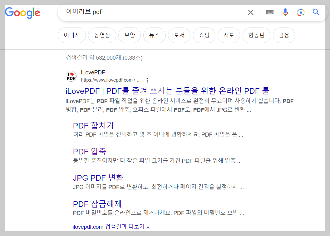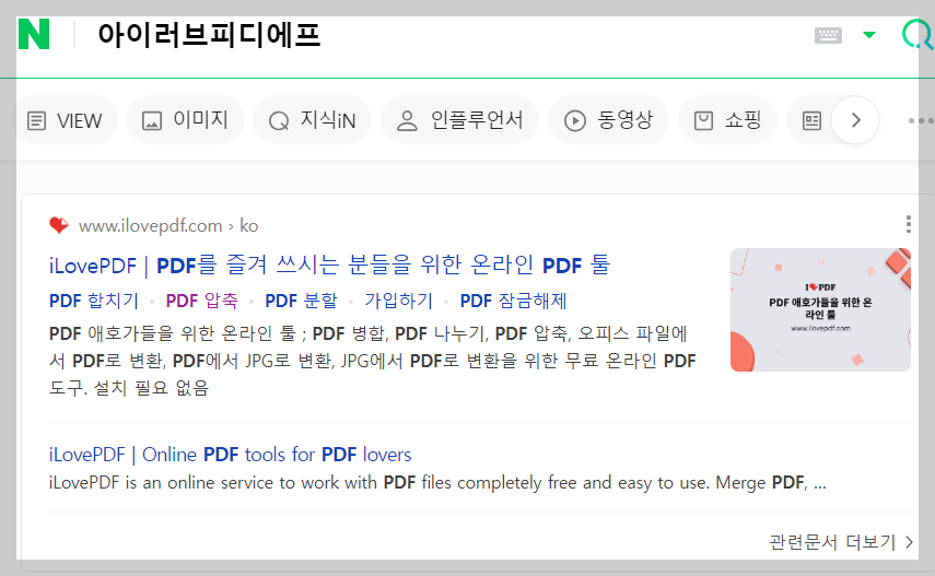 제가 사용하고 있는 방법은 아이러브피디에프라는 사이트입니다. 해당 사이트는 각종 포털에서 검색하면 쉽게 찾아볼 수 있으실 겁니다.